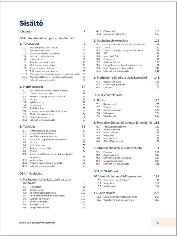 Käsikirja toimii Pelastustoimen venetoiminnan peruskurssin oppikirjana, joskin sen sisältö on venetoiminnan peruskurssia laajempi.